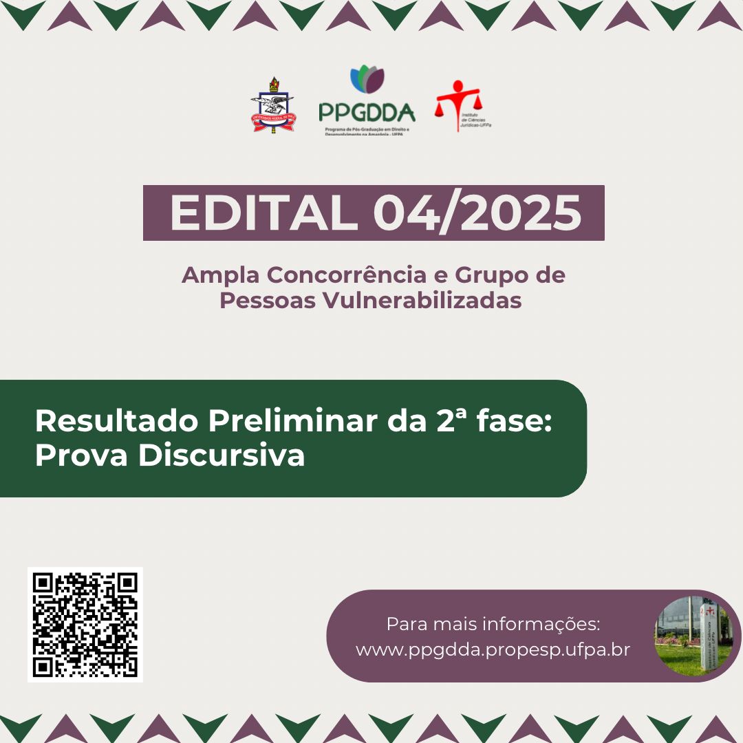 O Programa de Pós-Graduação em Direito e Desenvolvimento na Amazônia - PPGDDA da Universidade Federal do Pará torna público o novo cronograma das próximas etapas, de acordo com a segunda retificação do Edital de Abertura do Processo de Seleção de Discentes 06/2025 para o preenchimento de 30 (trinta) vagas no Curso de Especialização em Prática Jurídica do PPGDDA/ICJ/UFPA.